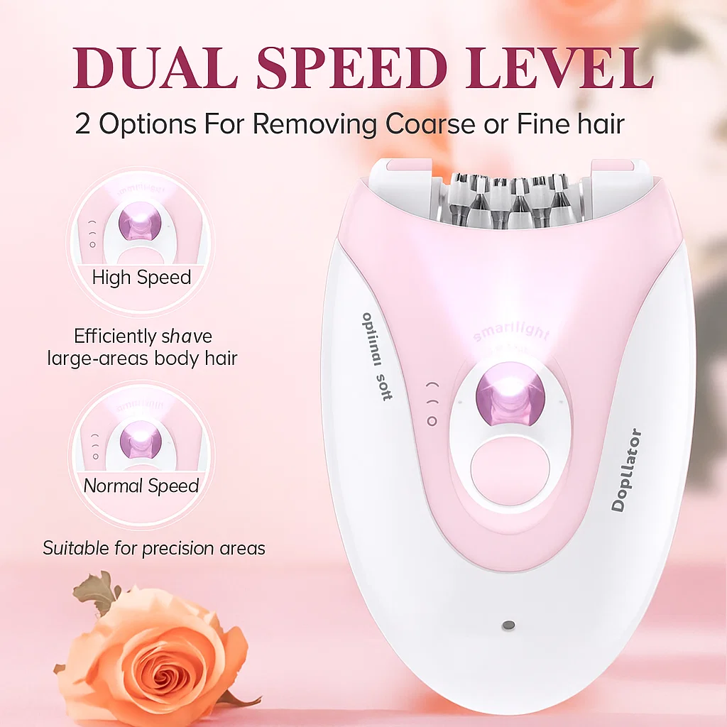 Painless Hair Removal: With regular use, this epilator gently removes hair from the root with minimal discomfort, making it an ideal option for sensitive skin. It helps reduce hair regrowth over time, leaving your skin smoother for longer.