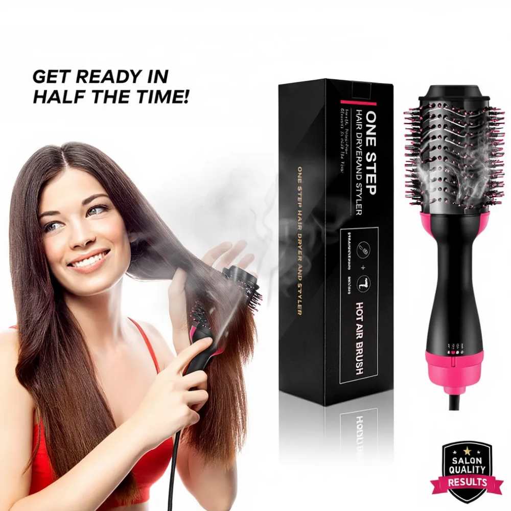 The One Step Hair Dryer And Styler Hot Air Brush Is A Multifunctional Hair Tool Designed To Simplify Your Styling Routine. Combining The Power Of A Hair Dryer With The Precision Of A Styler, It Dries, Straightens, Curls, And Volumizes Hair In One Easy Step. The Advanced Ionic Technology Reduces Frizz And Adds Shine, While The Lightweight Ergonomic Design Ensures Comfortable Use. Perfect For All Hair Types, This Kit Comes With An Extra Hair Tool Set For Professional-Level Styling Results At Home. Ideal For Everyday Use Or Special Occasions.
