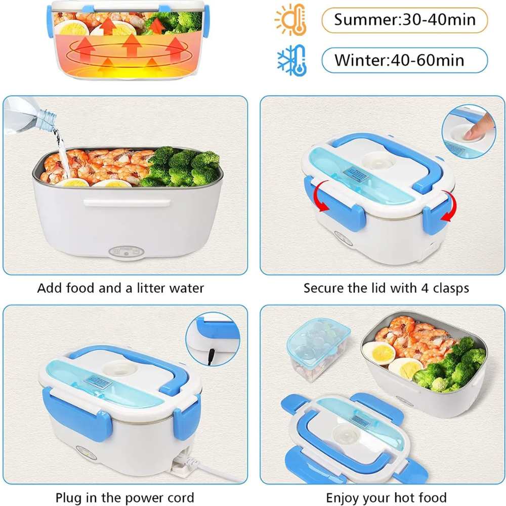 12. Despite the electric components, the lunch box is designed to be portable, making it suitable for use at work, school, or while traveling.